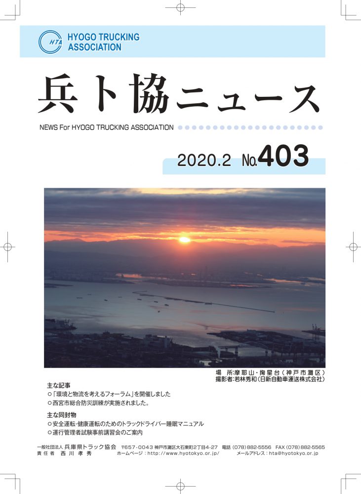 2020年(令和2年)2月号兵ト協ニュース表紙写真採用されました!